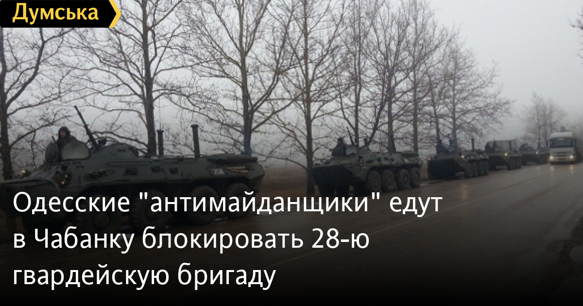 Пророссийские организации Одессы проводят автопробег с целью блокирования 28-й отдельной гвардейской механизированной бригады, которая дислоцируется в пгт Черноморское Коминтерновского района (Чабанка).