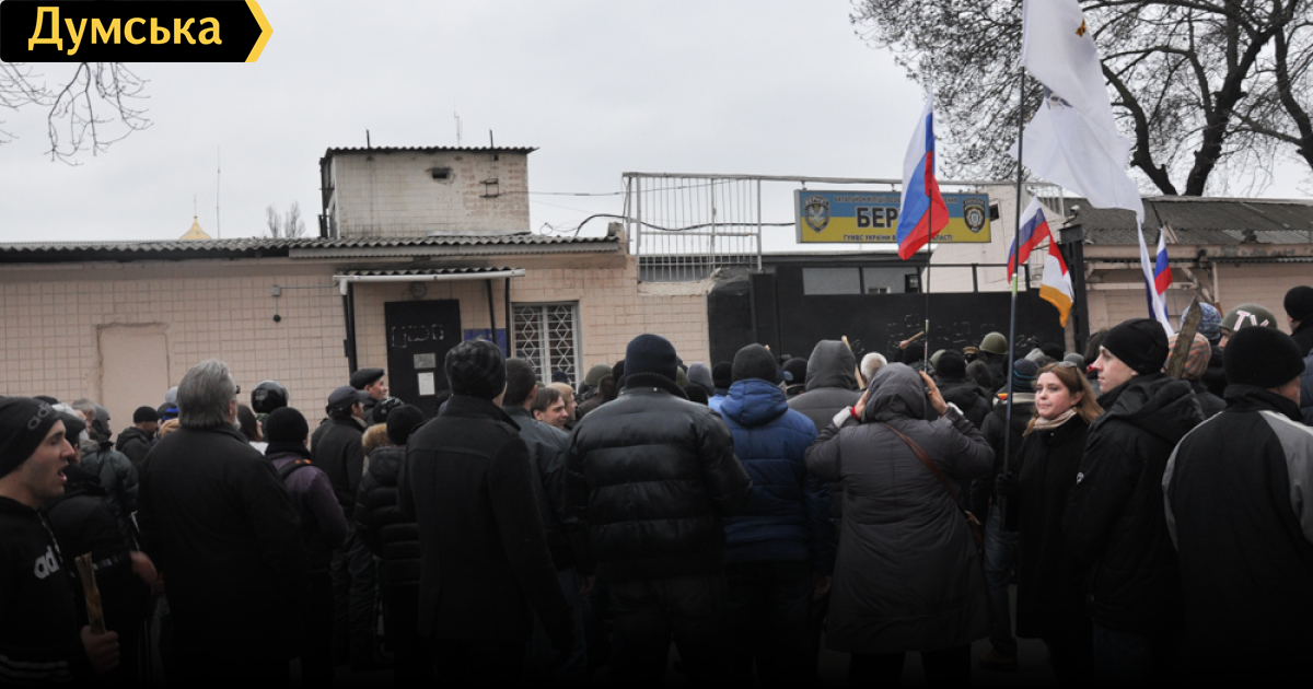 Как передает корреспондент «Думской», сначала около 150 человек скандировали у ворот базы «Беркут!».