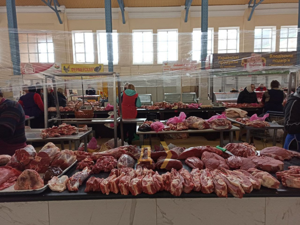 Мясо. К полудню четверга покупатели практически полностью разобрали на шашлыки свиную шею, которая стоила от 140 грн за кило. Зато другое мясо в изобилии: мякоть говядины идет от 120 гривен, биток — 160 грн за кило.