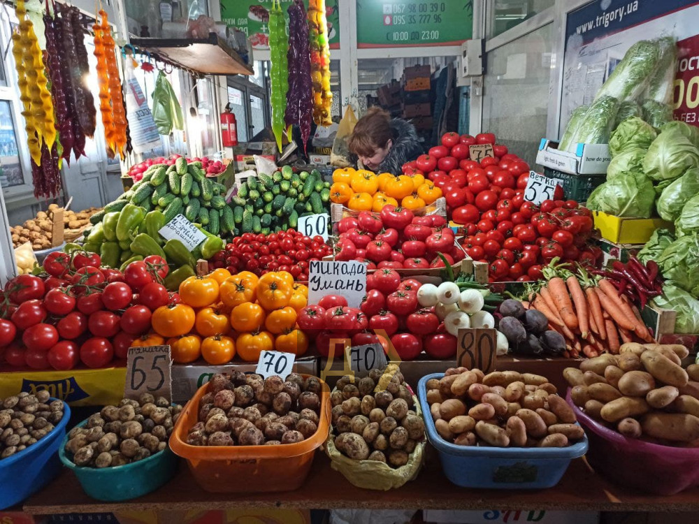 На Привозе много свежих тепличных овощей. Цены примерно соответствуют магазинным: молодая капуста — 30-35 грн, огурцы — 50-70, помидоры — 50-100 (верхняя цена — обычно за микадо), редиска — 20-40 за кг, кабачки — 50 грн, молодая картошка уже почищенная в пакетах — от 70 до 100 грн за кило. Зелень — от пяти гривен. Клубника пока кусается — 200-220 грн за кило.