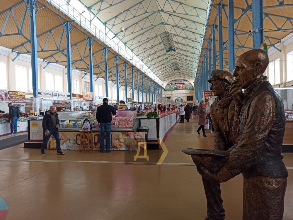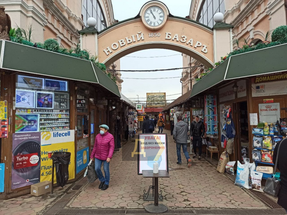 Именно такая табличка украшает вход на Новый рынок со стороны Торговой. За мини-стендом даже стоит фирменный санитайзер, который, действительно, пахнет спиртом, а не водой с мылом. Охранник у входа говорит, что следит за соблюдением карантинных правил, однако заставлять посетителей носить маски не имеет права.