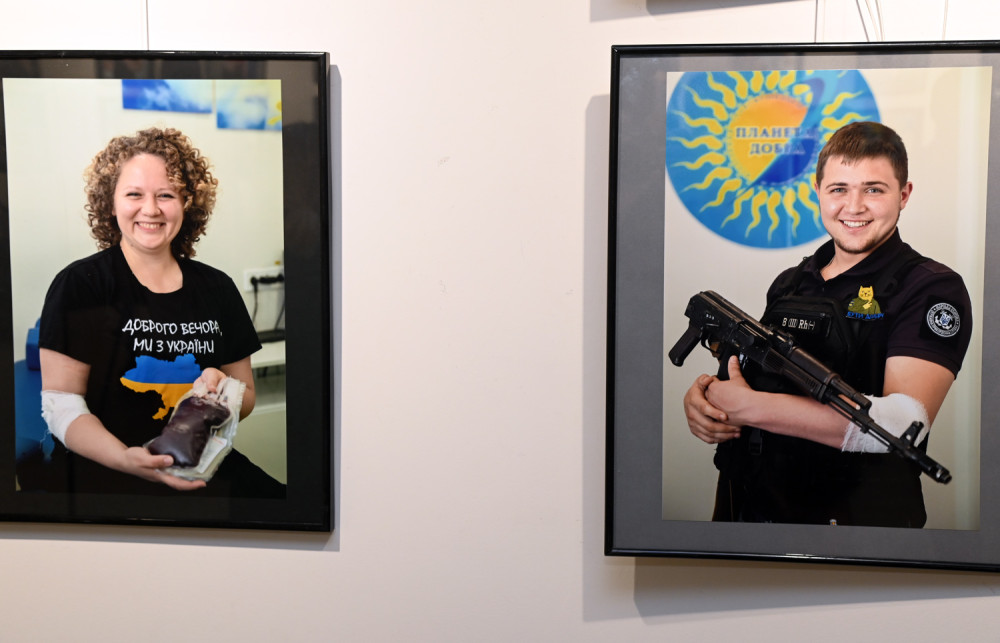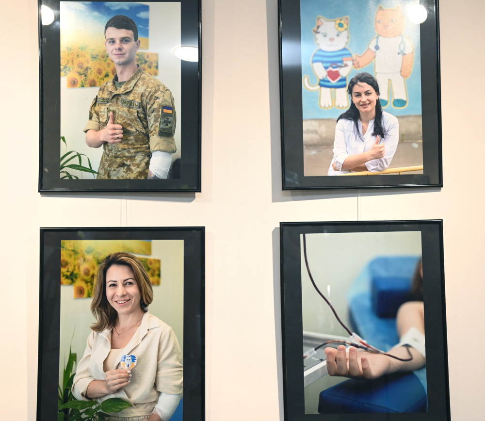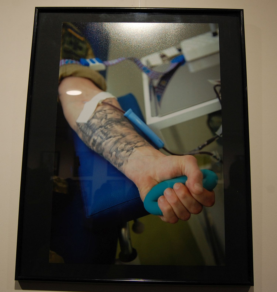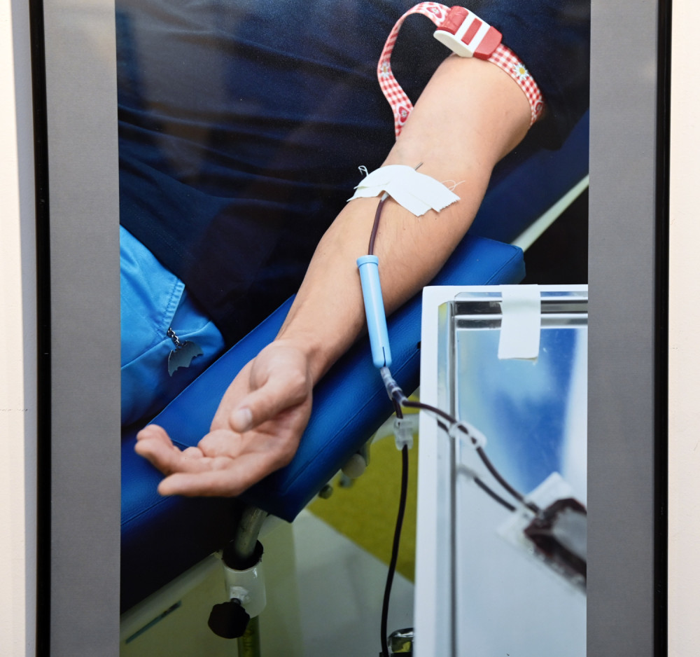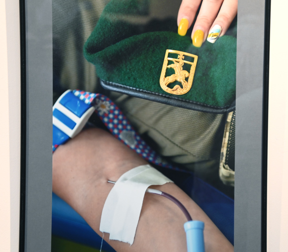 «Фото сделаны в момент сдачи крови и после этого. Есть фото, на котором человек сидит с баночкой своей крови, держит ее в руке. Меня поражает, что люди сдают кровь и улыбаются – они делают хорошее дело. Чем может помочь во время войны гражданский? Не все могут воевать. Но помочь мы должны. В банке должна быть кровь любой группы », — отметил Борис Бухман.