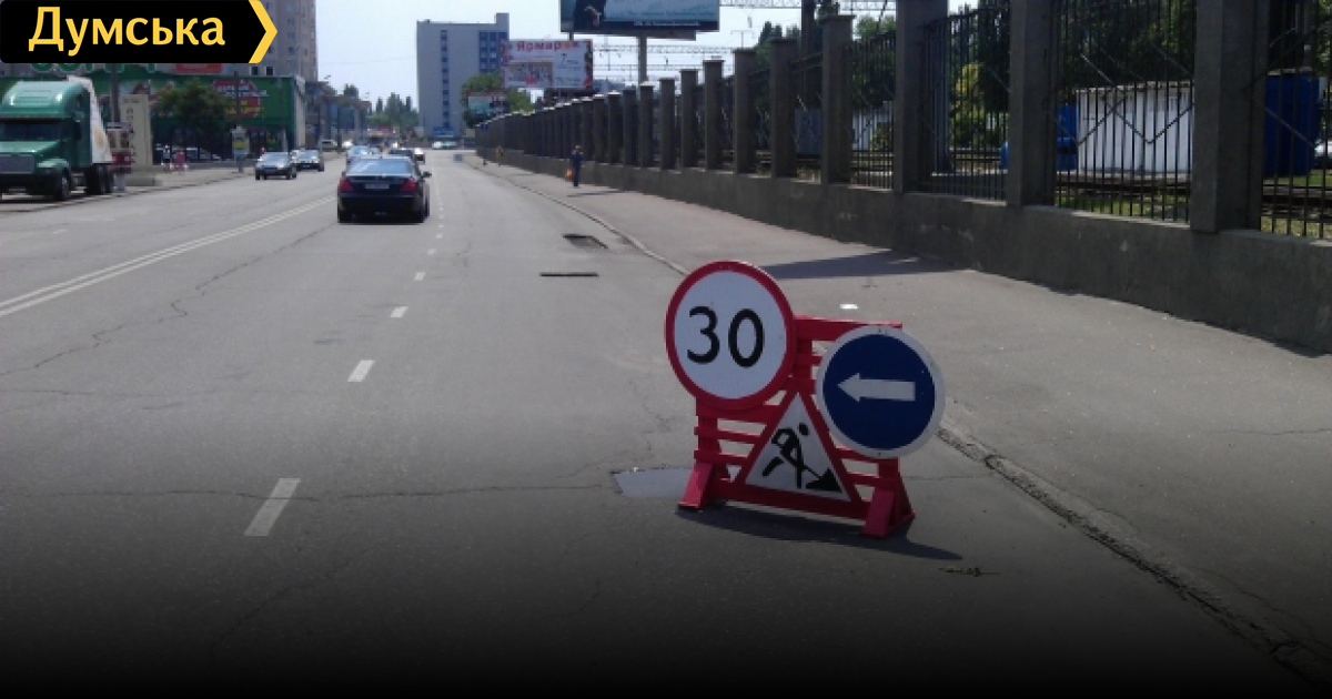 Первые «ласточки» огражденных ям появились на Среднефонтанской — участки дороги подготовленные для ремонта были обозначены соответствующими дорожными знаками, а не оставлены, как это было раньше, неогражденными.
