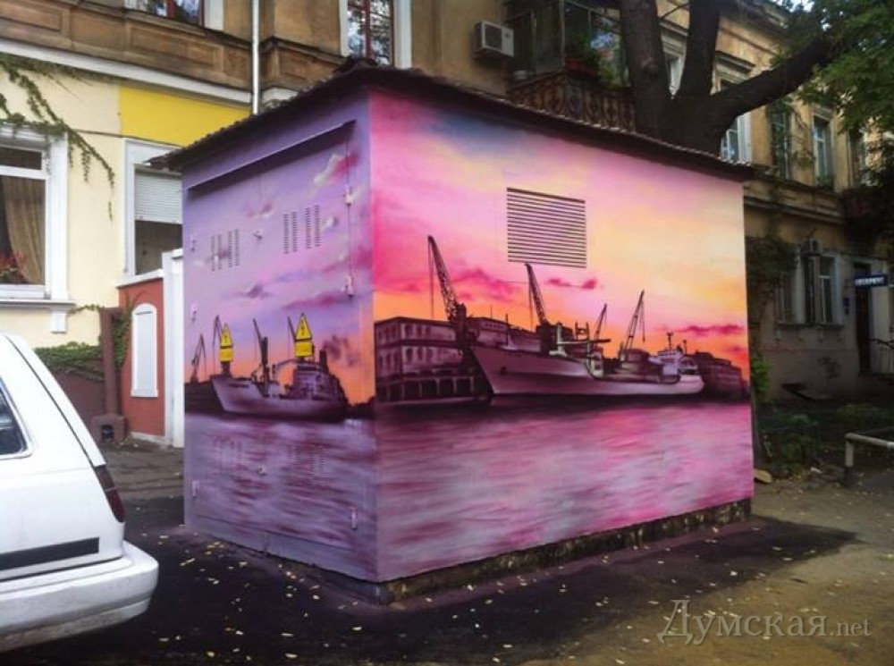 Одесские энергетики украсили еще одну трансформаторную будку морским пейзажем (фотофакт)«Одессаоблэнерго» продолжает украшать свои объекты в Одессе. На сей раз привлеченные компанией художники из творческой группы M97 project, разрисовали трансформаторную будку на углу Еврейской и Польской. Отныне она будет радовать прохожих морским пейзажем. Ранее, напомним, художники использовали в качестве холста старинные, еще бельгийской постройки, подстанции. Они же принимали участие в реставрации исторического поворотного электрощита на пересечении Пушкинской и Греческой. M97 project займется и украшением подстанции «Маразлиевской», которую облэнерго хочет построить в парке Шевченко. Фото Юлии Городецкой СМЕРТЬ РОСІЙСЬКИМ ОКУПАНТАМ! Помітили помилку? Виділяйте слова з помилкою та натискайте control-enter |