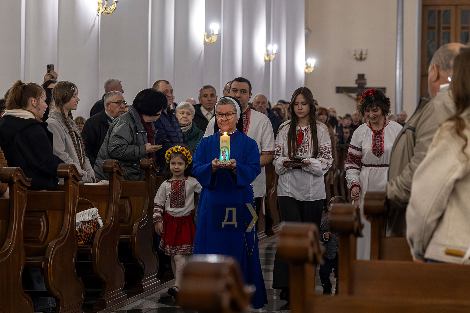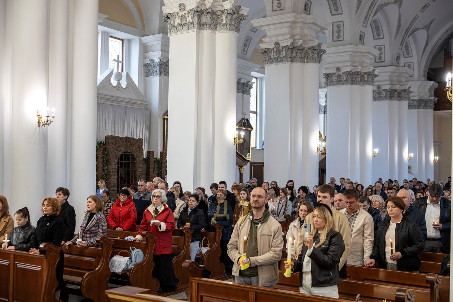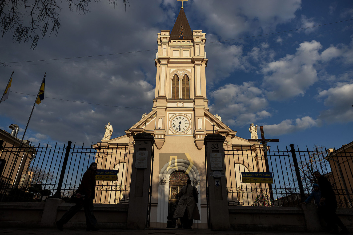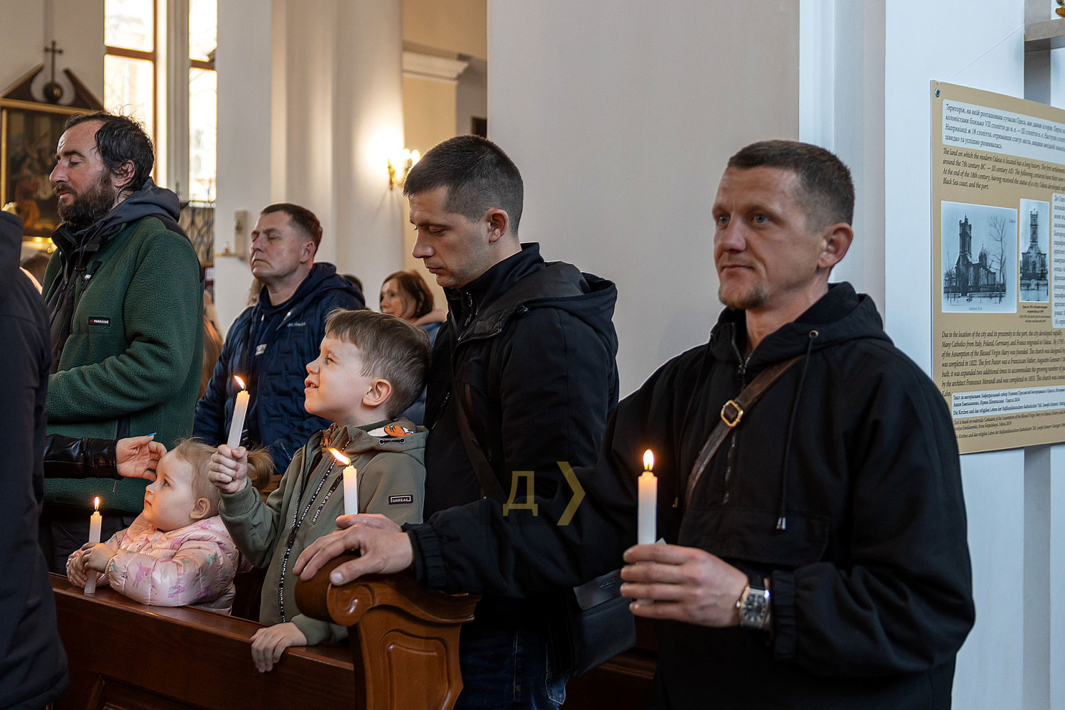 Воскресіння Христове відзначають сьогодні одеські римо-католики та частина протестантів. Кореспондент «Думської» напередодні відвідав вечірню літургію в кафедральному соборі Успіння Пресвятої Богородиці Діви Марії на Європейській вулиці. Богослужіння зібрало сотні парафіян. Перед входом до храму традиційно встановили величезний каркас у вигляді яйця, куди кожен може повісити свою писанку.