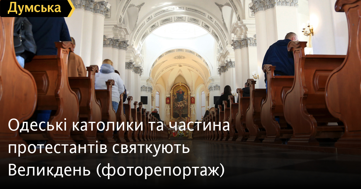 Великдень за григоріанським календарем святкують сьогодні, 31 березня, в Одесі. Як передає кореспондент «Думської», кілька сотень парафіян прийшли на богослужіння до головного католицького храму міста — кафедрального собору Успіння Пресвятої Діви Марії, що на Катерининській. Багато хто приніс великодні кошики для освячення. У всіх святковий настрій. Молоді пари фотографуються біля ікон. Багато хто схиляє коліна в молитві перед вівтарем. У крамниці всередині собору багато людей — віряни купують великодні сувеніри. У римо-католицькому храмі святого апостола Петра, що на Гаванній вулиці, людей набагато менше, ніж у кафедральному соборі. Тут також відбувається святкова меса, звучить музика, багато хто підспівує церковному хору. Цікаво, що богослужіння тут проводять не лише українською, а й польською та навіть російською мовою. Фото Сергія Смолєнцева СМЕРТЬ РОСІЙСЬКИМ ОКУПАНТАМ! Помітили помилку? Виділяйте слова з помилкою та натискайте control-enter |