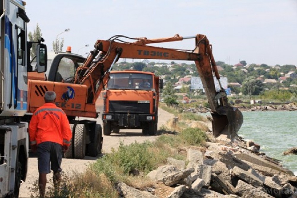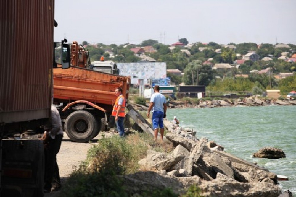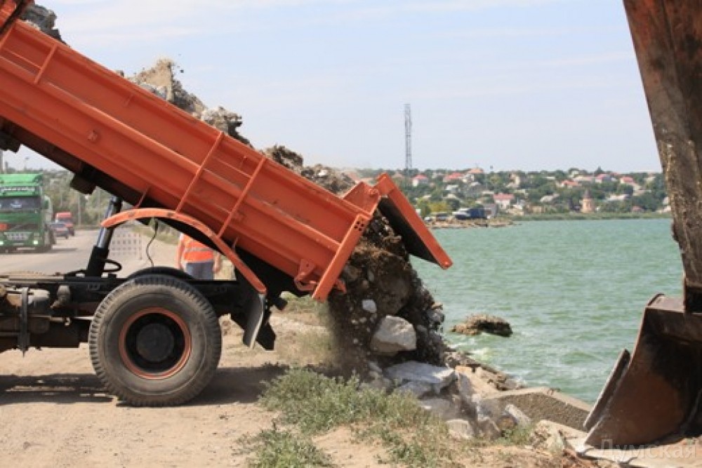 Одесские коммунальщики латают дамбу Хаджибейского лимана