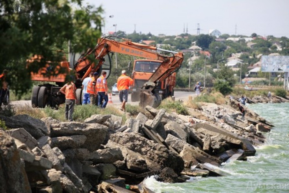 Специалисты коммунального предприятия «Городские дороги» проводят работы по ликвидации четырех промоин, образовавшихся вдоль водоотбойной стены Хаджибейского лимана. Промоины закрывают бетонными блоками. В работах задействована тяжелая спецтехника КП «Городские дороги»: четыре самосвала и два экскаватора, сообщила пресс-служба мэрии.