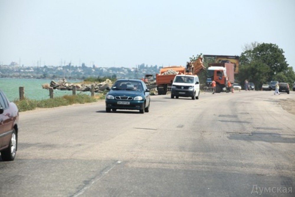 До сраки кари очи. Нужна не свалка мусора, а нормальная дамба с четырехрядной дорогой. Чтоб немного разгрузить поток от грузовиков, нужно срочно ремонтировать дороги Р55, Т1616, Т1623 — часть потока с севера страны в порты Южного и Николаева пойдут не по Объездной, а свернут с дороги М05 раньше.