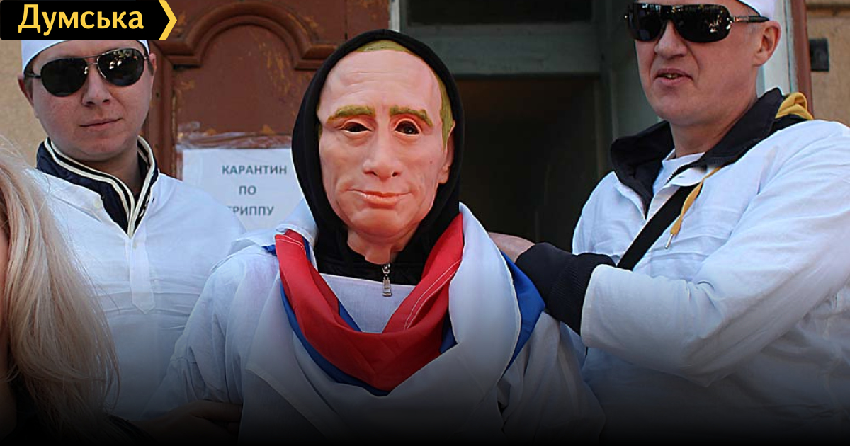 Как передает корреспондент «Думской», около 30 автомобилей с флагами Украины и Одессы проехали сегодня по улицам Одессы. Конечной точкой колонны была улица Академика Воробьева, где расположена Одесская областная клиническая психиатрическая больница №1. Там активисты сопроводили в здание больницы человека в смирительной рубашке и маске с лицом президента РФ Владимира Путина.