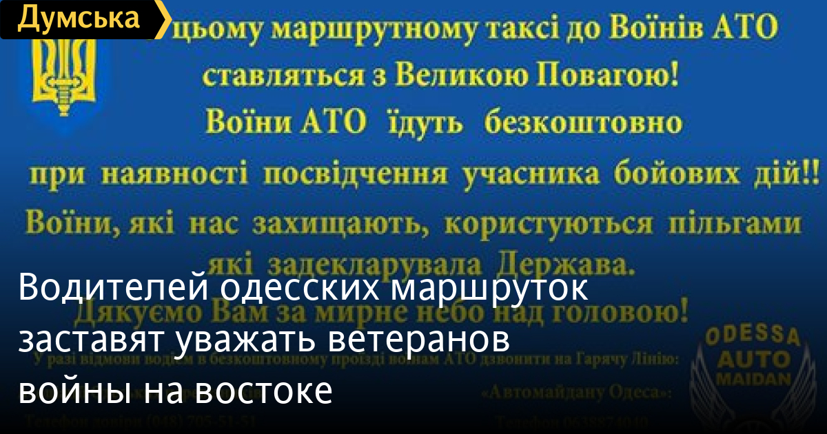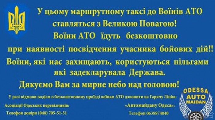В одесских маршрутках появятся плакаты, напоминающие, что участники войны на востоке Украины имеют право на бесплатный проезд.