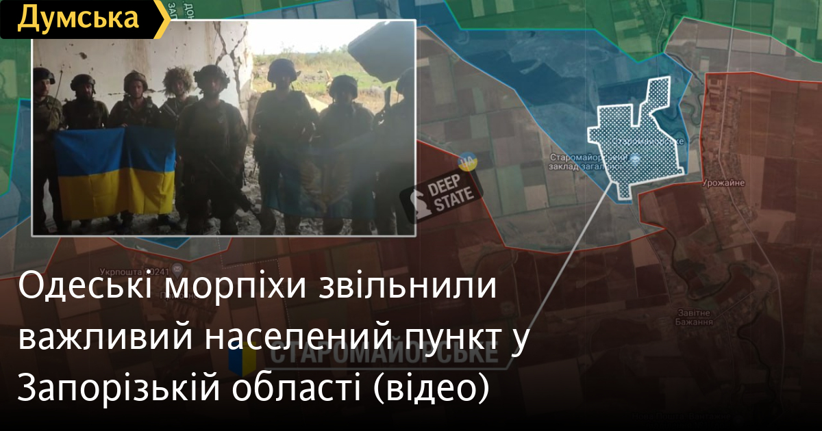 Село Старомайорське в Запорізькій області звільнено воїнами 35-ї окремої бригади морської піхоти імені контр-адмірала Михайла Остроградського, а також 7-го окремого батальйону тероборони «Арей».
