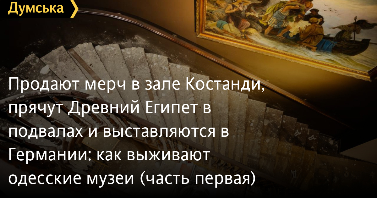 Продают мерч в зале Костанди, прячут Древний Египет в подвалах и выставляются в Германии: как выживают одесские музеи (часть первая)— Где же затраты на культуру? — Так война же идёт! Какая культура? — Если нет культуры, так зачем мы тогда воюем? — удивился Черчилль С началом большой войны расходы на содержание музеев резко сократились. Коллекции вывезли в безопасные места или просто спрятали, сотрудников перевели на ополовиненные ставки, а то и вовсе отправили «на простой» (человек не работает и не получает зарплату, но и не уволен)… Кто-то и вовсе лишился места, другие защищают Украину с оружием в руках. Художественный, Археологический, Западного и Восточного искусства, Краеведческий, Литературный, Блещунова, Музей современного искусства — кто-то пережил удар «Искандера», кому-то досталось во время атаки дронов, есть и те, кого пронесло. Музейщики могли выбрать: подойти к проблеме формально, работая с 10:00 до 16:00 только в будни, или встать на военные рельсы, «придумать» экспозиции, зарабатывать на мерче. Мы изучили работу одесских музеев и пришли к выводу — пытаются выжить все. Однако далеко не все готовы выходить за рамки привычной рутинной работы. Кто-то зарабатывает, экспонируясь в Европе, а кто-то так и не вывез свои фонды, пряча их от чужих глаз в подвале. Мы помним залы, где висели Врубель и Ге, стояли гобелены и древние амфоры. Мы верим, что любимые полотна и скульптуры вернутся домой. Мы знаем, наши музейщики в совершенстве овладели искусством выживания. Для удобства чтения мы разделили материал на две части. В первой — мерч на месте Костанди в Худмузее, неопределенность с фондами Археологического и европейское турне Западного и Восточного. ХУДОЖЕСТВЕННЫЙ: ВЫСТАВКИ И ДРУГИЕ ПРОЕКТЫ, НЕСМОТРЯ НИ НА ЧТО Одесский художественный музей пострадал от боевых действий напрямую. 5 ноября 2023 года, незадолго до празднования 124-летия, «Искандер» ударил прямо в тротуар у ограды Дворца Потоцких. В памятнике архитектуры национального значения выбило окна, обвалилась штукатурка, были повреждены стены. Еще сильнее пострадал административный комплекс. К счастью, к тому времени часть коллекции, которая относится к национальному и всемирному достоянию (входит в «красный список»), уже эвакуировали. Первое время после открытия экскурсии проводили по почти пустым залам, где остались только картины настолько большие и скульптуры настолько тяжелые, что их невозможно спрятать. «Потом начали собственный проект «Языки войны», привозили выставки художников из других городов, — рассказывает замдиректора музея и председатель общественной организации Museum for Change Дарья Дьякова. — Получив запрос от горожан, которые соскучились по классическому искусству, начали переговоры с коллекционерами, чтобы они предоставляли нам работы для экспонирования. Так и появилась выставка Маргит и Романа Сельских — художников с запада Украины. Эдуард Дымшиц дал нам эти работы. Сейчас у нас есть две выставки. Люды Ястреб — Виктор Маринюк предоставил ее работы для экспонирования. И большая экспозиция, посвященная 160-летию Грековского колледжа. Тут тоже работы у нас временно». Открытие выставки «Плеяды» Музей комбинирует искусство разных времен. Делает выставки о павших героях — художниках, поэтах, фотографах, которые пошли на войну, но при этом продолжали творить. Реч