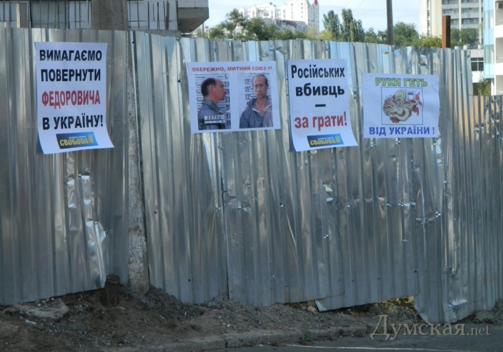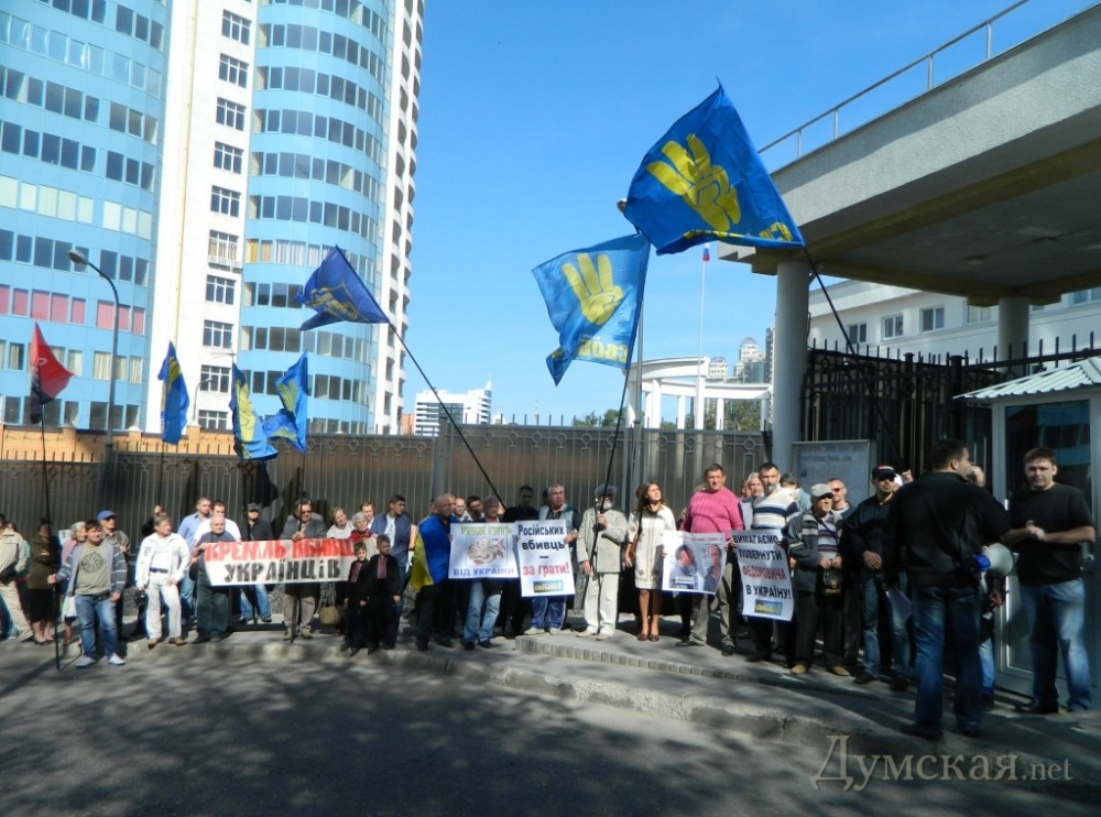 Активисты ВО «Свобода» 6 сентября пикетировали Генеральное консульство РФ в Одессе с требованием освободить украинского рыбака Александра Федоровича, пострадавшего во время инцидента с российскими пограничниками в Азовском море. По мнению председателя горорганизации партии Игоря Тимощука, причиной трагедии, во вовремя которой погибли четыре украинца, является отсутствие государственного морской границы между Украиной и Российской Федерацией. «Исключительно из имперских амбиций РФ уже двадцать лет постоянно отказывается от предложений Украины определить морской границы в Азовском море. Что касается украинцев, убитых преступной группировкой «банда ФСБ», то можно предположить, что против них было применено огнестрельное оружие, иначе опытные моряки, оказавшись в воде, так быстро не погибли бы », - заявил он. Кроме того, националисты обвинили Генеральное консульство РФ в Одессе в разжигании межнациональной вражды. «Представители консульства направления причастны к организации каналов финансирования украинофобских группировок в городе и периодической активизации пророссийских, шовинистических группировок полукриминального типа», — сказал глава областной организации «Свободы» Андрей Маляс. Также участники пикета возложили к зданию консульства молоко и сыр украинского производства – «в знак протеста против торговой войны, которую развязало руководство российского государства». Никто из дипломатов к ним не вышел. Как известно, 17 июля в Азовском море катер береговой охраны пограничной службы России таранил украинское рыболовецкое судно. Последнее перевернулось, в результате чего погибли четверо граждан Украины, одного удалось спасти. В России относительно выжившего Александра Федоровича возбудили дело по ч.3 ст. 256 Уголовного кодекса Российской Федерации (незаконная добыча водных биологических ресурсов). Если украинца признают виновным, по российскому законодательству ему грозит штраф от 100 тысяч до 500 тысяч рублей или до двух лет лишения свободы. Тем временем мариупольская прокуратура по надзору за соблюдением законов в транспортной сфере внесла сведения по данному факту в Единый реестр досудебных расследований с предварительной квалификацией по ст. 291 (нарушение действующих на транспорте правил) УК Украины. Расследование поручено проводить следственному отделу линейного отдела на станции Мариуполь Управления МВД Украины на Донецкой железной дороге. На днях Министерство иностранных дел Украины заявило, что надеется на положительное решение вопроса о возвращении Федоровича. Первый вице-премьер Сергей Арбузов сообщил, что в ближайшее время будет принято решение о выплате денежной поддержки родственникам погибших граждан Украины. Фото: пресс-служба партии СМЕРТЬ РОСІЙСЬКИМ ОКУПАНТАМ! Помітили помилку? Виділяйте слова з помилкою та натискайте control-enter |