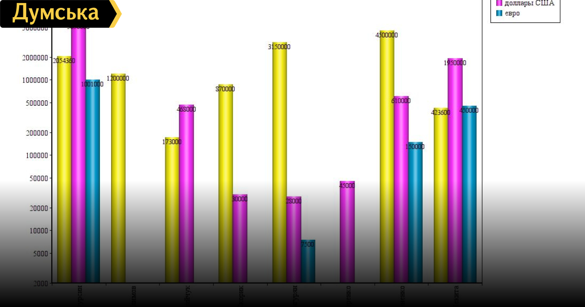 Народные депутаты Украины, представляющие в Раде Одессу и область, хранят наличными огромные суммы, всего почти 400 миллионов гривен. В кубышки к политикам заглянуло издание облорганизации Комитета избирателей Украины «Избирком». Коллеги подсчитали средства, указанные нардепами в электронных декларациях. Свои наличные члены парламента предпочитают хранить в трех валютах — отечественной, долларах США и евро, причем валюта Евросоюза является наименее популярной. При общем подсчете налички выяснилось, что 16 нардепов хранят 39 млн 272 тыс. 552 грн, $10 млн 373 тыс. 900 и 1 млн 926 тыс. 181 евро. В пересчете по курсу Нацбанка общая сумма кэша составила приблизительно 373 млн 554 тыс. грн. Не хранит наличку только один нардеп — Александр Пресман, который передал эту миссию супруге Татьяне Кузькевич (она хранит наличкой $1 млн 800 тыс, 720 тыс. евро и 5 млн 100 тыс. грн. Впрочем, при подсчетах «Избирком» не принимал во внимание средства членов семей депутатов — только их личные. Самым богатым в плане нала оказался Иван Фурсин — 2 миллиона 54 тыс. гривен, 5 млн 850 тысяч долларов и миллион евро. Самый бедный, только не смейтесь, Леонид Климов, который хранит под подушкой 1 миллион 120 тысяч гривен. СМЕРТЬ РОСІЙСЬКИМ ОКУПАНТАМ! Помітили помилку? Виділяйте слова з помилкою та натискайте control-enter