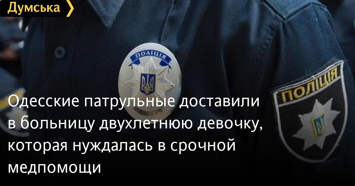 Одесские патрульные доставили в больницу двухлетнюю девочку, которая нуждалась в срочной медпомощиОдесские патрульные доставили в медучреждение двухлетнюю девочку, которая нуждалась в неотложной помощи. Как сообщила пресс-служба патрульной полиции Одессы, к правоохранителям обратилась женщина, которая рассказала, что ее дочь вдруг начала задыхаться и нуждается в срочной госпитализации. Инспекторы Алексей Леонов и Олег Иванов решили не дожидаться скорую помощь и на своем автомобиле доставили девочку в больницу, где ее уже ждала бригада медиков. СМЕРТЬ РОССИЙСКИМ ОККУПАНТАМ! Заметили ошибку? Выделяйте слова с ошибкой и нажимайте control-enter |