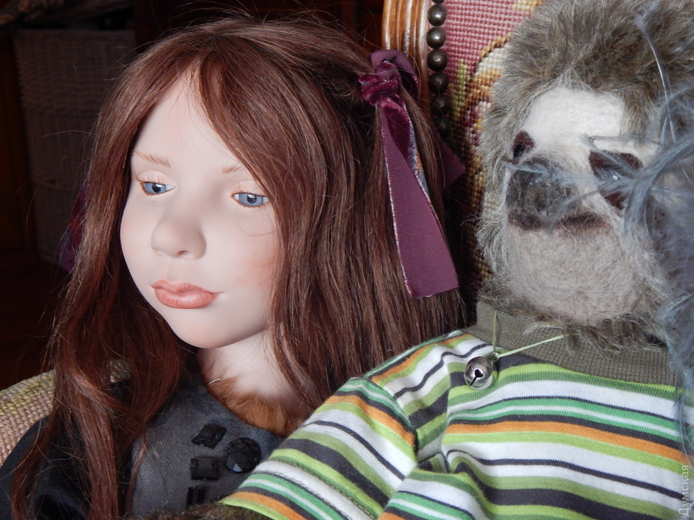 Я когда зашел к Филипповым (они так и на «Фейсбуке» значатся: «Лена и Сергей Филипповы», один аккаунт на двоих), то еще в прихожей застыл возле зеркального шкафа с полками, на которых сидели бесчисленные куклы. Сразу подумал, что это очень необычные игрушки. А когда заглянул в комнату, то увидел девочку, видимо дочку хозяев, которая, развалившись в кресле, как мне показалось, «втыкала» в айфон. Я уж было хотел поздороваться, но тут Лена небрежно «сгрузила» на девочку игрушечного ленивца, и она не шелохнулась! «Это же кукла», — восторженно подумал я осенил себя крестным знамением.