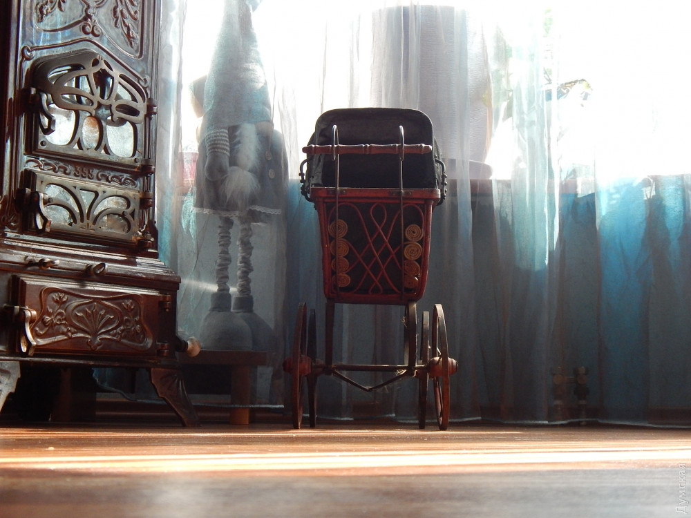 Пока я рассматривал кукол, то заметил, что хозяйка то ли в шутку, то ли всерьез разговаривает с ними. Вот одна из кукол выронила обруч, который держала. Он с громким звуком упал на пол.