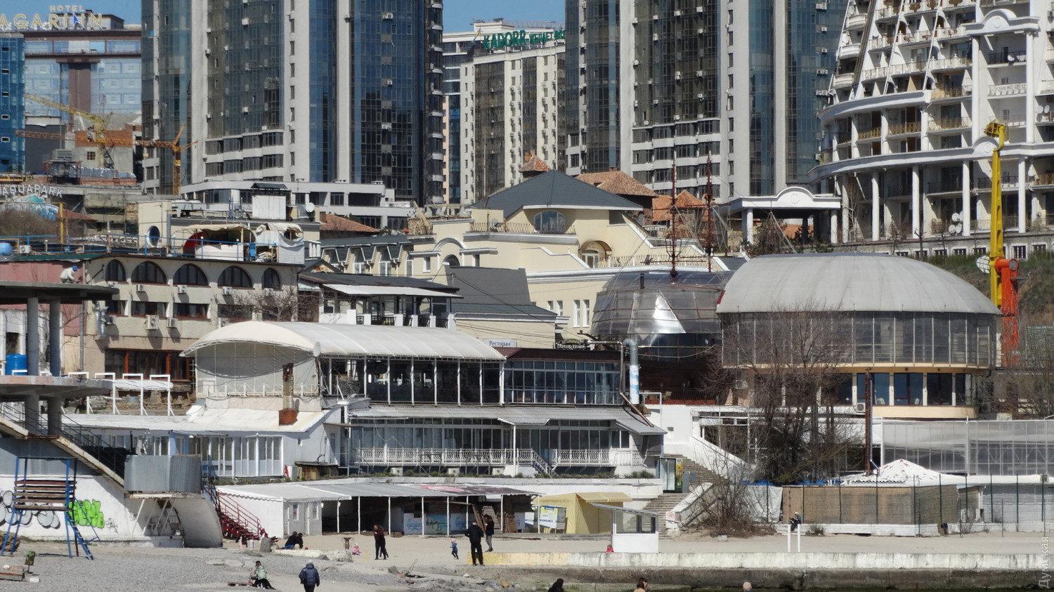 Пока предприниматели приводят свою территорию в товарный вид, а чиновники оформляют документы и прикидывают прибыли (свои и города), корреспондент «Думской» прогулялся вдоль побережья от 16-ой станции до Аркадии и зафиксировал, как проходит процесс подготовки к сезону.