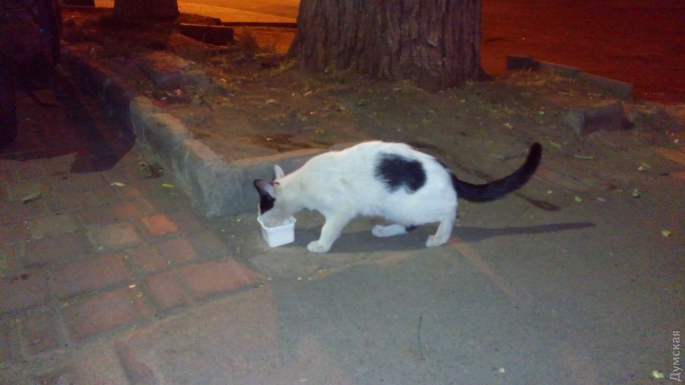 Как рассказали нам свидетели умилительной операции, спасенную кошку накормили йогуртом работники близлежащего продуктового магазина.