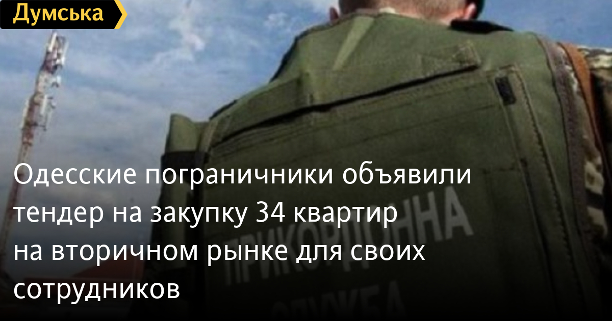 Одесские пограничники объявили тендер на закупку 34 квартир на вторичном рынке для своих сотрудниковЮжное региональное управление Государственной пограничной службы Украины объявило конкурс на закупку жилья для военнослужащих пограничников. На сайте Министерства внутренних дел значится, что необходимо закупить до 34 квартир на вторичном рынке в Подольске, Измаиле, Одессе, Белгороде-Днестровском. К примеру, в Одессе ищут 10 трехкомнатных квартир, четыре двухкомнатные и две однокомнатные. Конкурсное предложение действительно до 27 ноября с тем, чтобы оформить квартиры до 20 декабря. СМЕРТЬ РОССИЙСКИМ ОККУПАНТАМ! Заметили ошибку? Выделяйте слова с ошибкой и нажимайте control-enter |