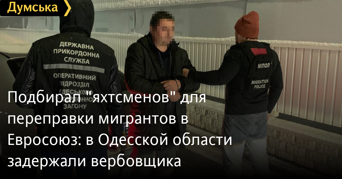 Подбирал «яхтсменов» для переправки мигрантов в Евросоюз: в Одесской области задержали вербовщикаДеятельность международного канала торговли людьми прекратили оперативники Одесского пограничного отряда. Как сообщает пресс-служба ведомства, злоумышленник вербовал украинских моряков, у которых были проблемы с разрешительными документами, якобы на высокооплачиваемую работу. Однако людей привлекали к работе на яхтах, перевозивших нелегальных мигрантов из Западной Азии в Грецию и Италию. «Как результат, большинство украинских моряков вместо значительных заработков получили большие сроки заключения в странах ЕС, а немало нелегальных мигрантов погибали в Средиземном море», — сообщают в погранотряде. По данным оперативников, канал торговли людьми организовал уроженец Херсона вместе с сообщниками из-за границы. За каждого завербованного украинца он получал по 2000 долларов. Фигурант задержан, ему сообщили о подозрении по ч. 2 ст. 149 УК Украины (торговля людьми). СМЕРТЬ РОСІЙСЬКИМ ОКУПАНТАМ! Помітили помилку? Виділяйте слова з помилкою та натискайте control-enter |