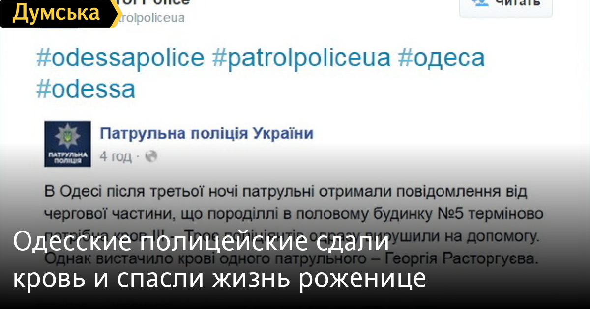 Одесские полицейские не только порядок на улице наводят, но и становятся донорами, спасая жизни горожан. Так, сегодня ночью патрульные получили сообщение, что в роддоме №5 по улице Говорова необходима кровь III группы. Трое полицейских сразу отправились на помощь. Об этом сообщается на официальной странице патрульной полиции в Твиттере. «Достаточно было крови одного полицейского — Георгия Расторгуева»,- отмечается в сообщении. СМЕРТЬ РОССИЙСКИМ ОККУПАНТАМ! Заметили ошибку? Выделяйте слова с ошибкой и нажимайте control-enter |