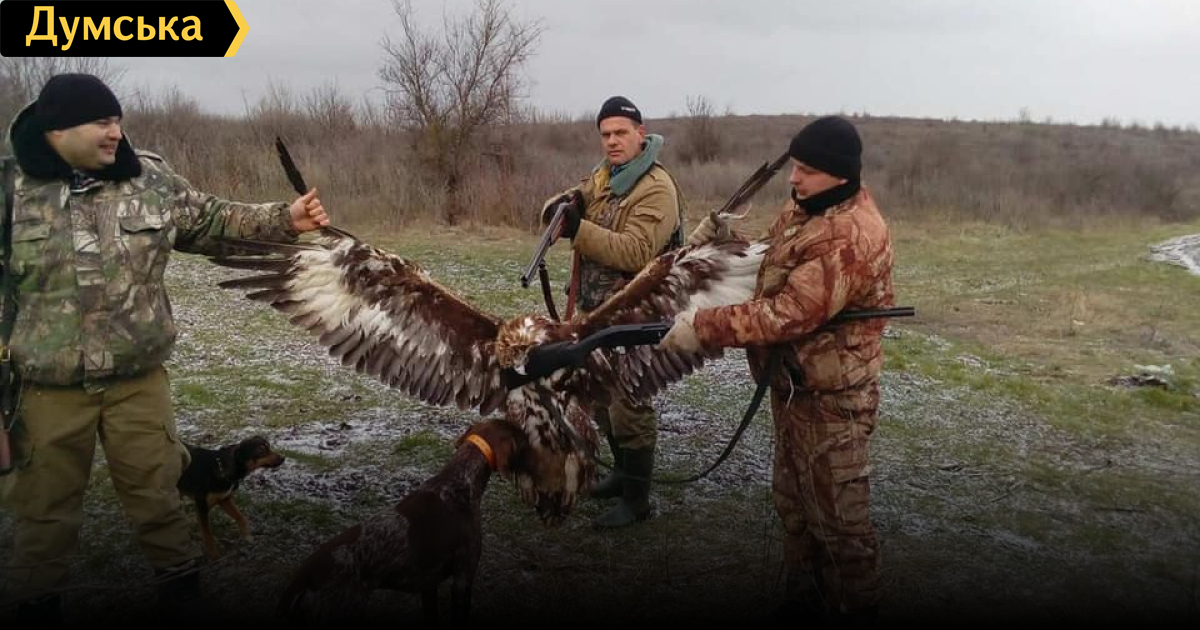 В сети появилось фото одесских полицейских на охоте, которые держат убитого краснокнижного беркута.