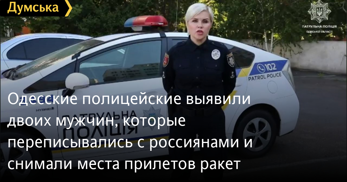 Двоих горожан, переписывавшихся с оккупантами, фотографировавших блок-посты и места прилетов российских ракет, выявили за прошедшие сутки сотрудники патрульной полиции в Одессе.
