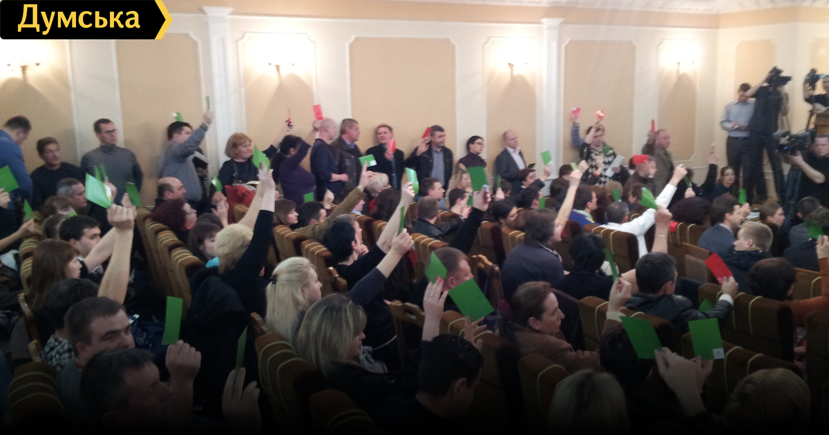 В обсуждении документа приняли участвовали 127 членов территориальной громады и 15 депутатов горсовета. Представитель «Родины» «Родины» Татьяна Сорокина предложила внести в повестку дня альтернативный проект МАФизации, разработанный ею, но сотрудники юридического департамента мэрии отказались сделать это, объяснив, что проект не был опубликован в печатных средствах массовой информации. Такое решение вызвало бурную реакцию у присутствовавших коллег Сорокиной по фракции, но чиновники остались непреклонны.
