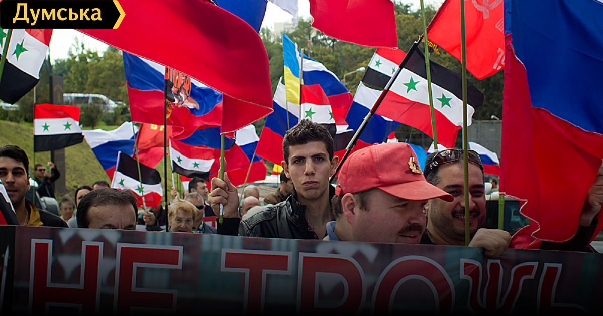 Одесские сирийцы поблагодарили Россию и Путина за предотвращение американской агрессииЛояльно настроенная к режиму Ассада часть сирийской диаспоры Одессы и пророссийские общественники во главе с «Мисс Баррикадой» Ниной Кочановской провели сегодня митинг благодарности перед стенами Генерального Консульства Российской Федерации. «Россия сыграла ключевую роль в предотвращении американской агрессии. Сегодняшним митингом, мы хотим поблагодарить Россию и президента Владимира Владимировича Путина за принципиальность», — заявил один из участников акции. К митингующим вышел генконсул РФ Юрий Антонов. Он, в свою очередь, выразил благодарность одесской общественности, поддержавшей сирийцев: «Как хорошо, что есть люди, понимающие, насколько важно сохранить международную безопасность и избежать военных действий. Я уверен, что нашу позицию, позицию Российской Федерации в отношении Сирии поддерживает основное большинство одесситов». СМЕРТЬ РОСІЙСЬКИМ ОКУПАНТАМ! Помітили помилку? Виділяйте слова з помилкою та натискайте control-enter