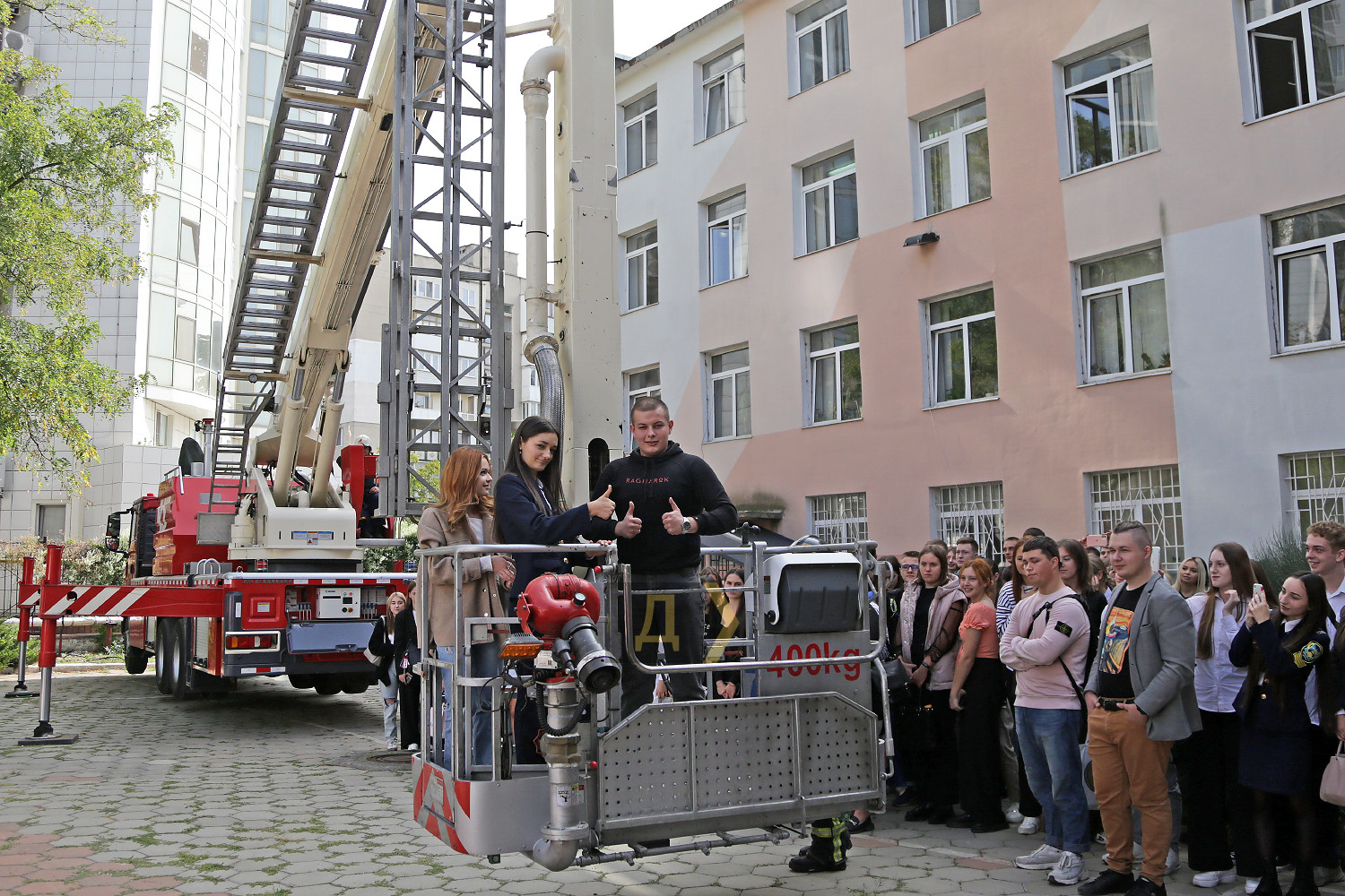 Масштабні навчання провели 3 жовтня одеські рятувальники в одному з навчальних закладів. Кілька сотень студентів евакуювали з аудиторій за сигналом пожежна тривога, але за легендою, багато хто залишився заблокованим на верхньому поверсі будівлі. До порятунку кількох людей із четвертого поверху приступила спецтехніка. За словами співробітників ДСНС, автомобільні сходи з люлькою, що прибули на місце, можуть евакуювати людей з дев'ятого поверху, піднявшись на висоту 34 метри. Для евакуації студентів знадобилося всього кілька хвилин — автолюльку підняли на 15 метрів, рятувальник допоміг перейти до неї з вікна будівлі, а потім людей опустили на землю під жарти і схвальні вигуки натовпу. До речі, в одеських пожежників стоїть на озброєнні і потужніша техніка, здатна піднятися на висоту до 50 метрів, тобто, приблизно на 16-й поверх, однак, за словами рятувальників, вона не завжди може дістатися до місця пожежі — більшість одеських дворів заставлені автомобілями або іншими перепонами, тому міжквартальними проїздами не можуть проїхати великі автомобілі з подібною технікою. Також пожежники провели майстер-клас із гасіння пожежі з брандспойта і за допомогою вогнегасника, у якому міг узяти участь кожен охочий, а піротехніки показали макети мін та інших вибухових пристроїв, пояснивши, чому до них не можна торкатися. «Сьогодні ми провели профілактичний захід, вони проводяться не тільки в Одесі, а й в області, — розповіла речниця одеського управління ДСНС Марина Мартиненко. — Практичні заняття завжди ефективніші, ніж теорія. Ми показуємо, як треба гасити пожежу за допомогою вогнегасників, і показали, як евакуювати людей за допомогою автодрабини. Наше завдання полягає в тому, щоб студенти знали правила пожежної безпеки, це стане їм у пригоді в майбутньому». Фото Сергія Смоленцева Помітили помилку? Виділяйте слова з помилкою та натискайте control-enter |