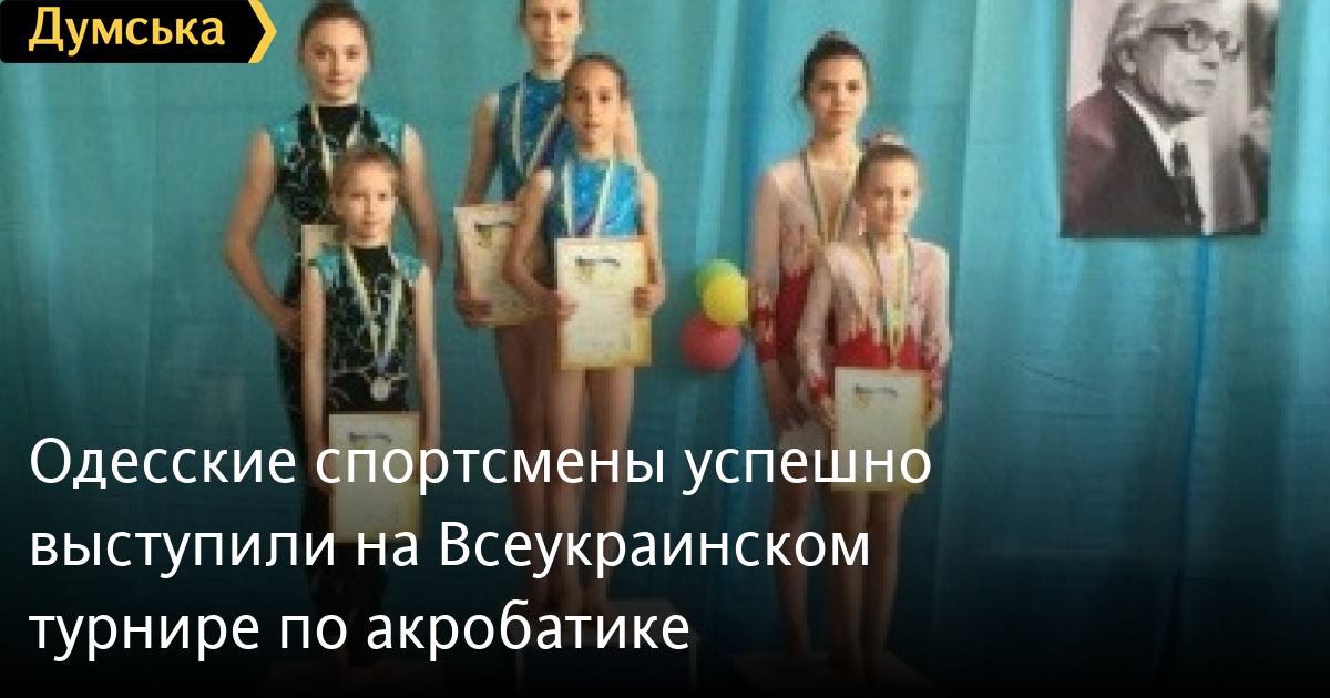 Одесские спортсмены завоевали призовые места на Всеукраинском турнире по спортивной акробатике памяти заслуженного тренера Украины Константина Полонца, который прошел с 19 по 22 мая в Белгороде-Днестровском. Одессу на соревновании представили воспитанники коммунального внешкольного учебного заведения «Комплексная детско-юношеская спортивная школа №1», завоевав при этом призовые места: Алла Асеева, Вика Асеева, Арина Беляева — 1 место в категории 12-18 лет; Победителям и призерам турнира вручили кубки, медали и грамоты. СМЕРТЬ РОССИЙСКИМ ОККУПАНТАМ! Заметили ошибку? Выделяйте слова с ошибкой и нажимайте control-enter |
