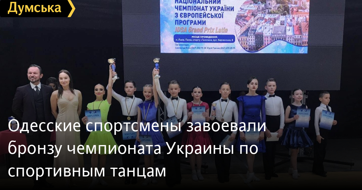 Бронзовую медаль чемпионата Украины по спортивным танцам среди всех возрастных категорий завоевали одесские спортсмены. Как сообщили в муниципальном управлении физкультуры и спорта, первенство прошло 28-31 мая во Львове. В нем приняли участие около 1200 спортсменов из 14 областей Украины. В составе сборной команды Одесской области выступили воспитанники отделения спортивных танцев комплексной детско-юношеской спортивной школы №1 г. Одессы Иванна Пантелюк и Александр Олейник. Одесситы успешно выступили на соревнованиях, заняв третье место в категории «ювеналы 2« (европейская программа). Спортсменов к соревнованиям подготовил тренер-преподаватель Виктор Палий. СМЕРТЬ РОССИЙСКИМ ОККУПАНТАМ! Заметили ошибку? Выделяйте слова с ошибкой и нажимайте control-enter |