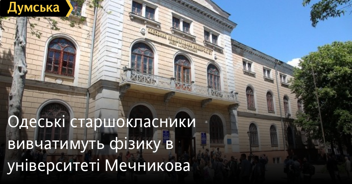 Одеські старшокласники вивчатимуть фізику в університеті МечниковаПриродничі науки одеські старшокласники вивчатимуть на базі інституту фізики ОНУ ім. Мечникова з наступного навчального року. Як повідомили у пресслужбі міськради, це дасть змогу розв'язати проблему нестачі вчителів фізики у школах, відповідного оснащення класів, а також підвищить якість підготовки дітей. Як розповіли «Думській» у департаменті освіти і науки міськради, деякі ліцеї з профільним вивченням фізики, наприклад 117, отримають додаткові години варіативної частини навчального плану. За рахунок цих годин заняття проводитимуть на базі ОНУ ім. Мечникова. «Професорський склад та Інститут фізики готові забезпечити профільне вивчення предмета. Оплачувати додаткові години викладачам будуть із місцевого бюджету, оскільки державна субвенція не покриває варіативну частину. Діти їздитимуть в університет на заняття», — пояснила директорка департаменту Олена Буйневич. Зазначимо, що наразі аналогічна практика існує в Рішельєвському ліцеї, який перебуває в обласному підпорядкуванні. А завдяки меморандуму, який підписало місто та ОНУ, це відбуватиметься централізовано. Помітили помилку? Виділяйте слова з помилкою та натискайте control-enter