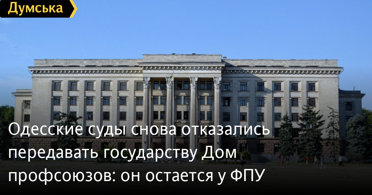 Одесские суды снова отказались передавать государству Дом профсоюзов: он остается у ФПУОдесский апелляционный хозяйственный суд подтвердил решение первой инстанции, которая повторно отказалась удовлетворять иск прокуратуры к Федерации профессиональных союзов Одесской области о признании прав собственности государства на Дом профсоюзов. Как и ранее, служители Фемиды указали прокуратуре и Фонду госимущества на пропуск ими срока исковой давности: регистрационное свидетельство на это здание профсоюзы получили в БТИ еще в 1992 году, а иск был подан лишь в 2015 году. Одесские суды рассматривали этот иск по третьему кругу: Высший хозсуд дважды возвращал дело обратно в Одессу, однако местные судьи остаются непреклонными. Напомним, инициатором проигранного иска стал народный депутат Сергей Пашинский. Основанием стало постановление Верховной Рады Украины от 10 апреля 1992 года «Об имущественных комплексах и финансовых ресурсах общественных организаций бывшего Союза СССР, размещенных на территории Украины». Однако, как выяснилось в суде, здание никогда не принадлежало общесоюзной организации. В 1983 году, когда был построен «кубик рубика» на проспекте Шевченко, областной совет профсоюзов купил освободившееся здание обкома партии по остаточной стоимости 1 миллион 800 тысяч советских рублей. Для этой покупки Всесоюзный совет профсоюзов (ВЦСПС) предоставил ссуду, которую до 1984 года возвращали из средств областных профсоюзных организаций. То есть, здание было куплено за счет профсоюзных взносов жителей области и принадлежало областной организации. Также оказались беспочвенными заявления прокуратуры о том, что Федерация профсоюзов не зарегистрирована в законном порядке как юрлицо. В законах, на которые ссылался представитель прокуратуры, прямо указано, что регистрация профессиональных союзов проводится в особом порядке по отдельному закону (который был принят в 1999 году). Как мы сообщали, после пожара 2 мая 2014 года часть здания, которая пострадала от огня, дыма, воды, а затем и вандализма, долго пустовала. Сейчас она ремонтируется. Неоднократно озвучивались заявления о размещении в нем различных учреждений; в частности, экс-губернатор Михаил Саакашвили заявлял, что на Куликовом поле будет находится штаб ВМС Украины. СМЕРТЬ РОСІЙСЬКИМ ОКУПАНТАМ! Помітили помилку? Виділяйте слова з помилкою та натискайте control-enter
