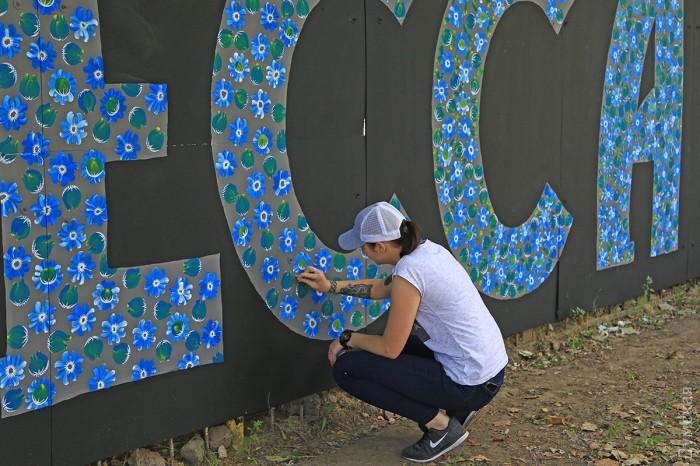 Художница Юлия рассказала, что первый рисунок появился на унылой стене несколько недель назад. С тех пор ребята в свободное время облагораживают эту серость. Все материалы покупают сами.