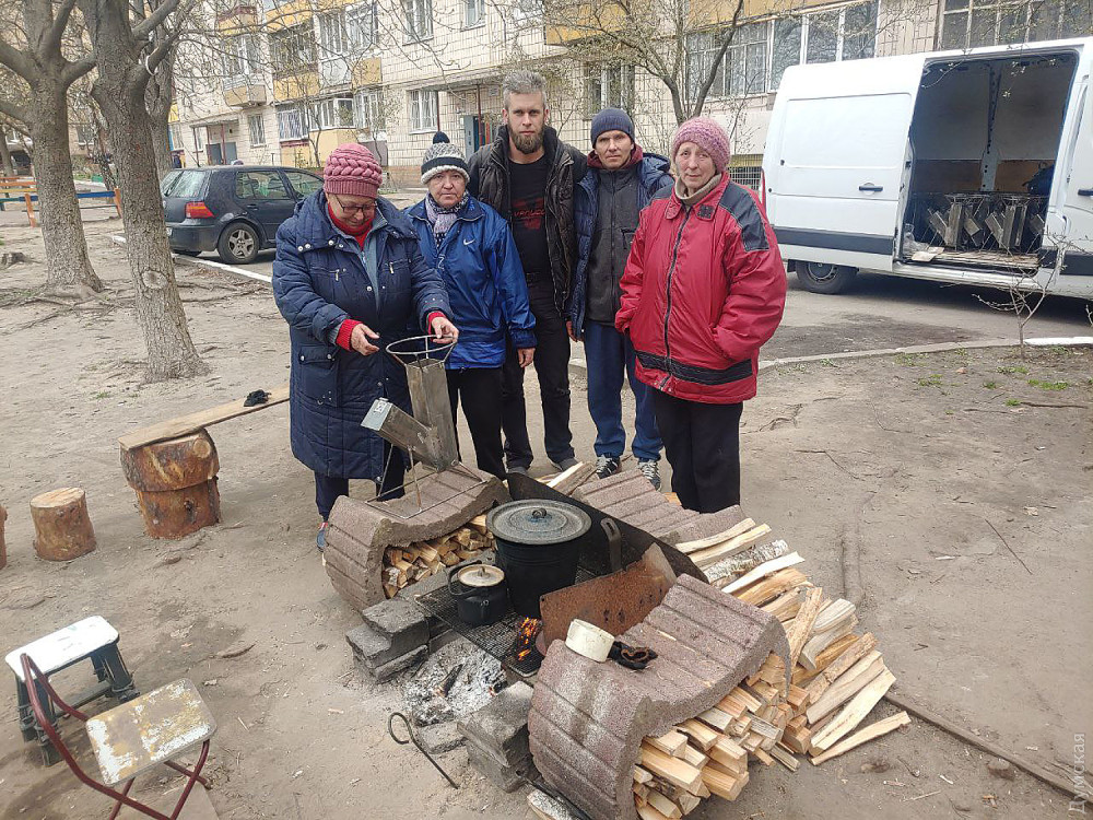 «Часть печек отдали ТРО Киевской области, остальные просто раздавали людям. Проезжая по улицам Бучи, высматривали людей, которые готовят пищу на кострах и раздавали им наши печи», — рассказывает Сергей.