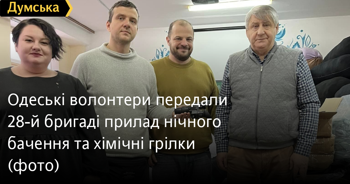 Прилад нічного бачення та 240 хімічних грілок, придбати які допомогли читачі «Думської» та волонтери Гончаренка центру, передали 28-й окремій механізованій бригаді імені Лицарів Зимового походу.