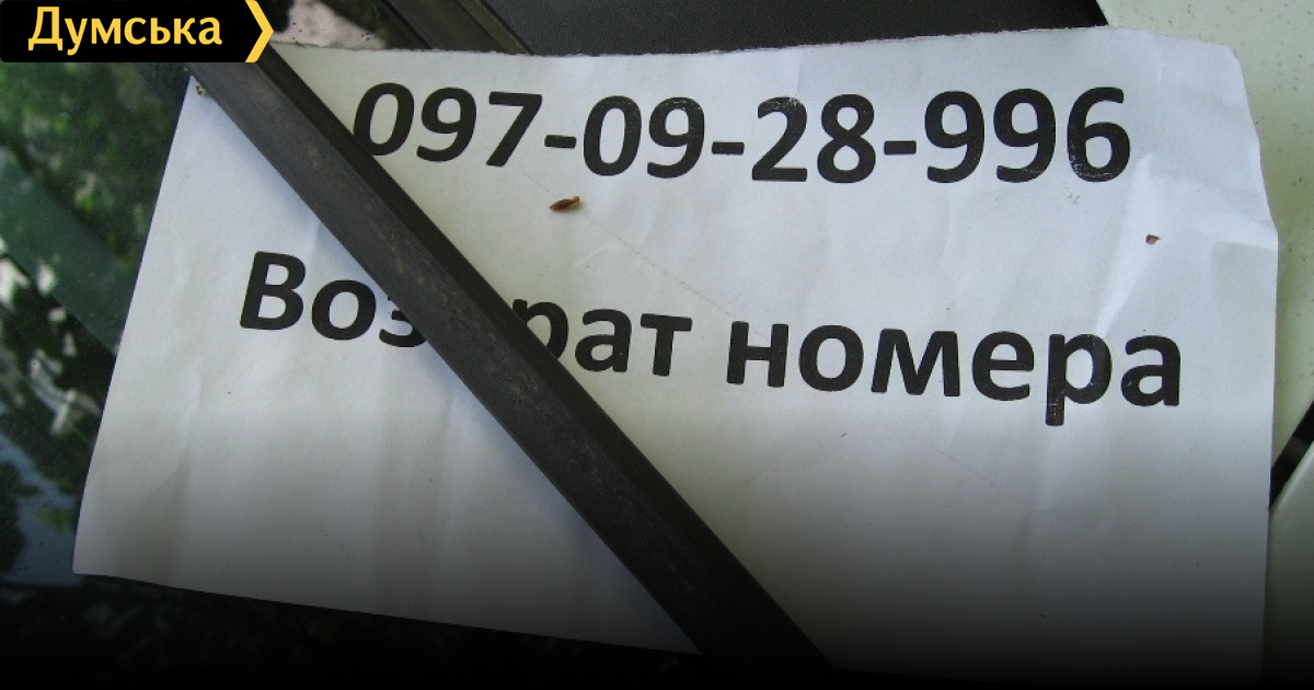У друга сняли номер года полтора назад во дворе напротив «Успеха». Запросили 300 грн — пополнить счет моб.тел. Потом сказали где номер — оказался в куче листьев в 5 метрах от машины.