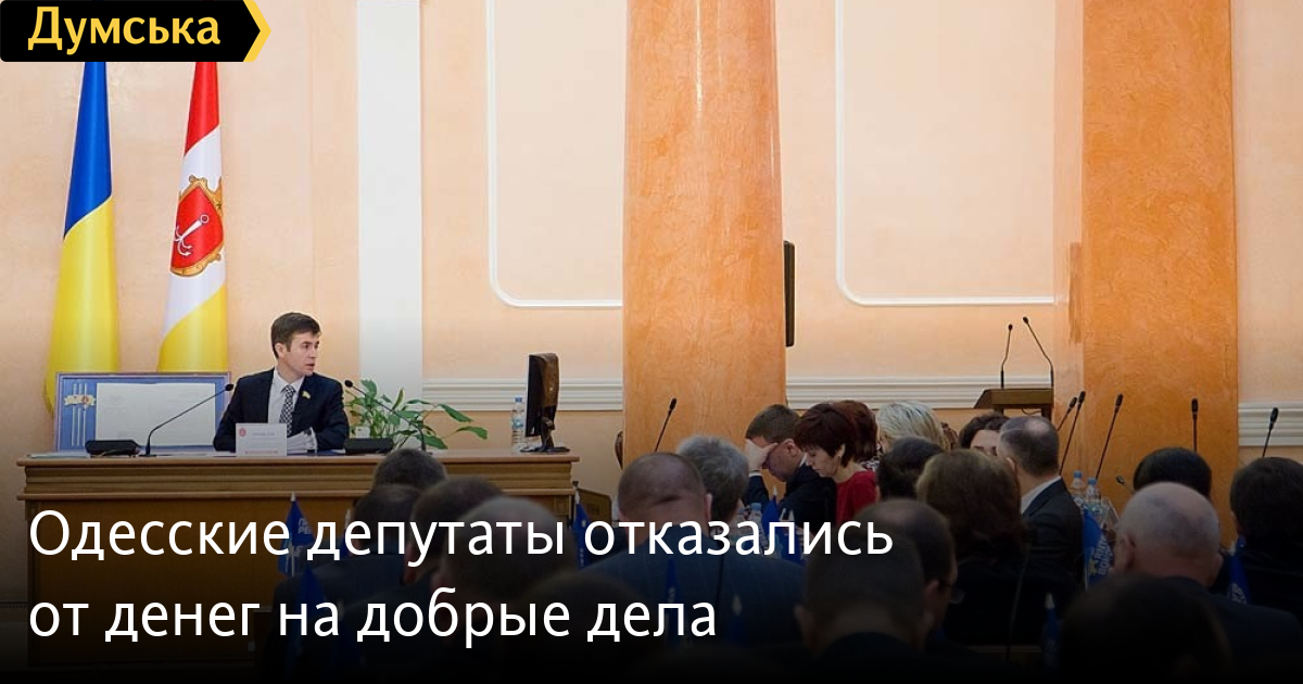 Одесский горсовет решил отказаться от так называемого депутатского фонда – средств, которые каждый народный избранник мог потратить на добрые дела для своего электората. Напомним, размер фонда составлял 12 млн грн – по 100 тысяч на каждого члена совета.