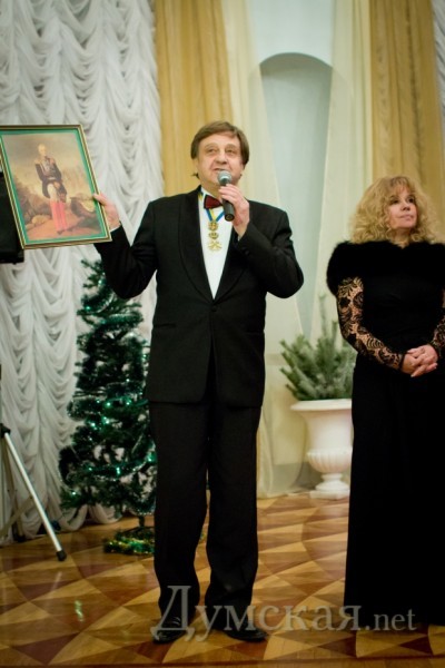 Современная знать и элита подкатывала к Воронцовскому дворцу не только на иномарках, но и на каретах. Чуть позже в числе награжденных почетным знаком «Меценат-2012» (так отметили тех, кто в течение года оказывал финансовую либо организационную поддержку работе дворца) оказалась и владелица салона карет «Золотые лошади» Марина Романова, одна из немногих меценатов, кто получил награду лично. За наградой явились также художник Алик Мирзоев (он дарит дворцу, где когда-то учился в изостудии, свои картины и собственноручно реставрирует старинное зеркало) и Генеральный Консул Грузии в Одессе Теймураз Нишнианидзе, у которого как раз был день рождения, к тому же совпавший с Днем дипломатии.