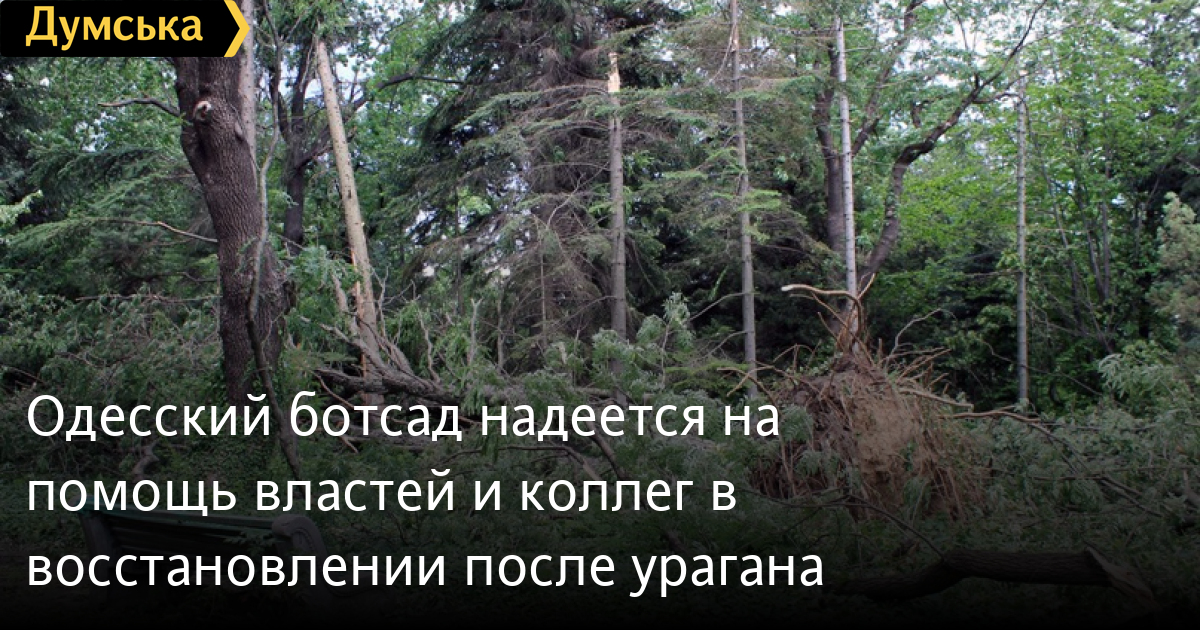 «Такого урагана, что пронесся над Одессой 31 мая, старожилы ботсада не фиксировали более полувека. Мы потеряли 150 деревьев возрастом от 100 до 130 лет, пострадали коллекции и оранжереи, — цитирует Александра Слюсаренко пресс-служба университета. — Но, благодаря связям с ботаническими садами мира, мы сможем возобновить цикл интродукционных испытаний, необходимых для озеленения города».