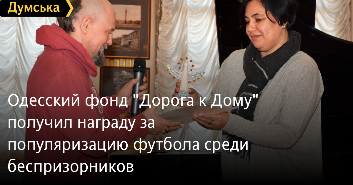 Одесский фонд «Дорога к Дому» получил награду за популяризацию футбола среди беспризорников10 марта в Золотом зале Литературного музея подвели итоги конкурса «Благотворительная Одесщина 2014» — регионального этапа Национального конкурса «Благотворительная Украина». За главные призы конкурса – янтарные статуэтки «Ангел добра» состязалось 29 благотворительных организаций Одессы и Одесской области. Победителей выбирали в шести номинациях. В специальной номинации «Благотворительные инновации» победу одержал благотворительный фонд «Дорога к Дому». «Ангела добра» из рук ведущих мероприятия получил президент фонда Сергей Костин. Он поблагодарил организаторов конкурса за признание, и добавил, что эта победа стала возможной благодаря совместной работе большого количества людей – сотрудников и волонтеров «Дороги к Дому». «Инновационный подход» в работе фонда «Дорога к Дому» осуществляется в различных направлениях, но непосредственно для конкурса «Благотворительная Украина» был выбран проект детского уличного футбола. СМЕРТЬ РОССИЙСКИМ ОККУПАНТАМ! Заметили ошибку? Выделяйте слова с ошибкой и нажимайте control-enter |
