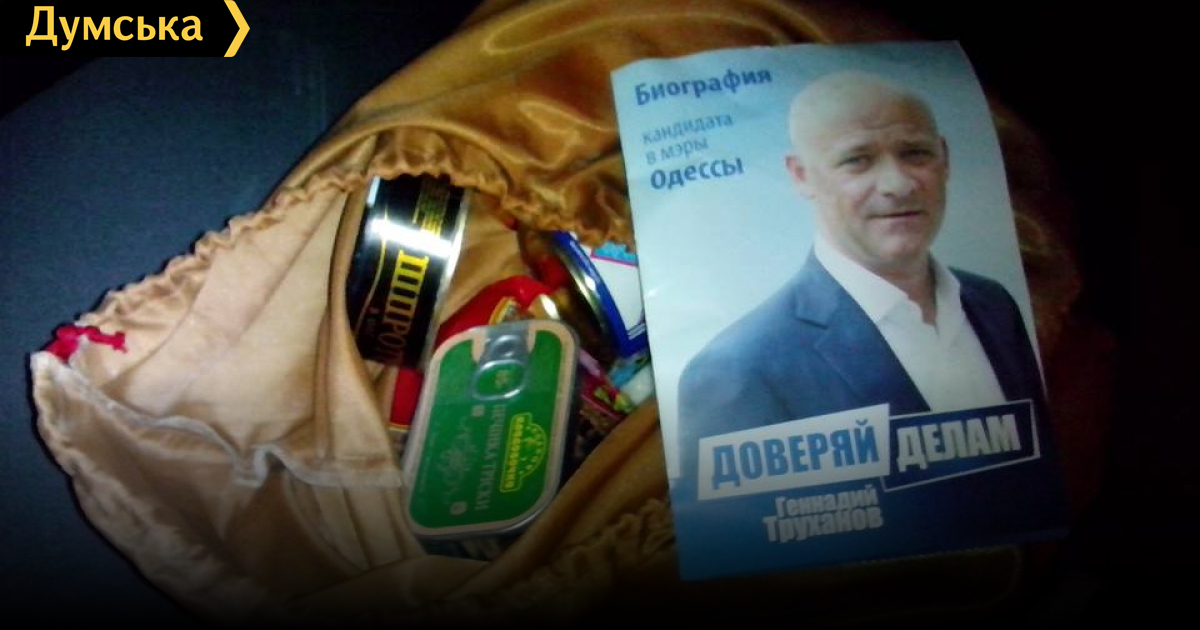 Напомним, ранее в Сети появилась информация о том, что участникам ВОВ в Одессе разносят наборы – сумки с поздравительной открыткой за подписью Палицы, перечнем продуктов (яйца, кофе, сахар, гречка, шпроты, водка и т.д.) и агитацией Труханова. При передаче одесситам говорили, что это поздравления именно от Труханова.