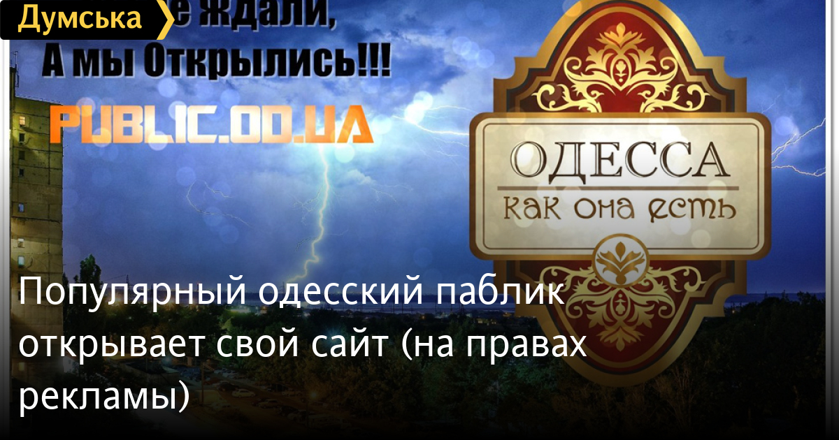 Уже сегодня вечером самое многолюдное городское сообщество в соцсетях «Одесса как она есть » откроет свой сайт. По словам создателя группы Алексея Королькова, планируется, что сайт public.od.ua станет самым большим одесским порталом. Контент сайта будет напоминать наполнение паблика- одесситам все так же будут доступны лучшие фотографии и видеоролики Сети, актуальные новости и анонсы интересных и ярких событий. Кроме того, в рамках портала будет действовать каталог одесских предприятий. Открытие запланировано на сегодняшний вечер. СМЕРТЬ РОССИЙСКИМ ОККУПАНТАМ! Заметили ошибку? Выделяйте слова с ошибкой и нажимайте control-enter |