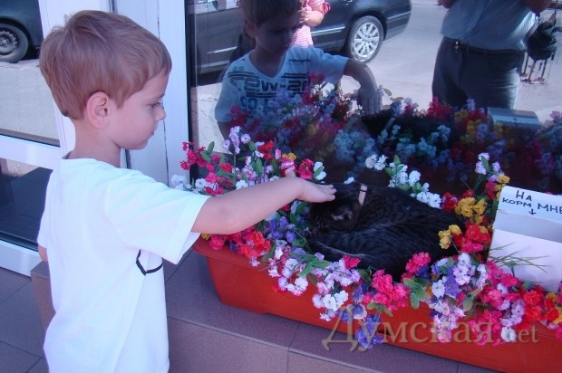 «Мы ходим тут по дороге из детского сада домой. Мой сын Илья любит постоять и погладить кота. Постоянно оставляем ему пару монет на корм, но как зовут его и откуда взялся, мы не знаем», – говорит молодая мама Марина.