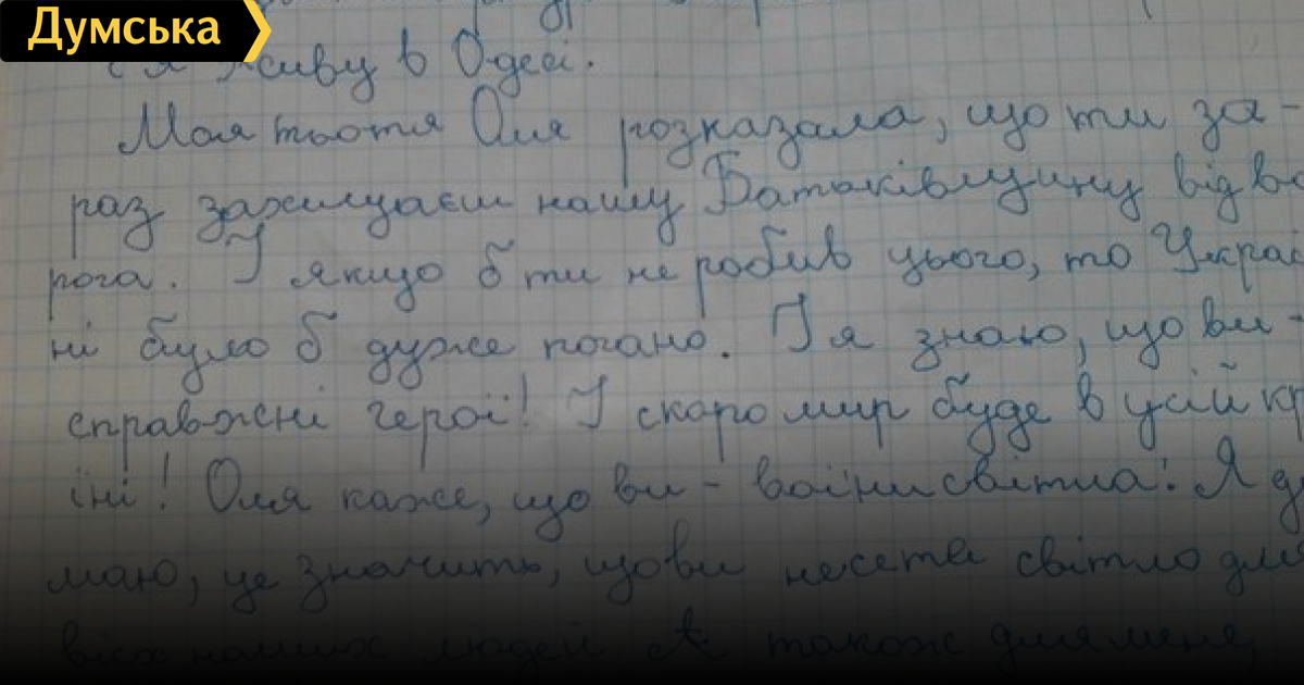 Одесский мальчик написал письмо солдату украинской армии