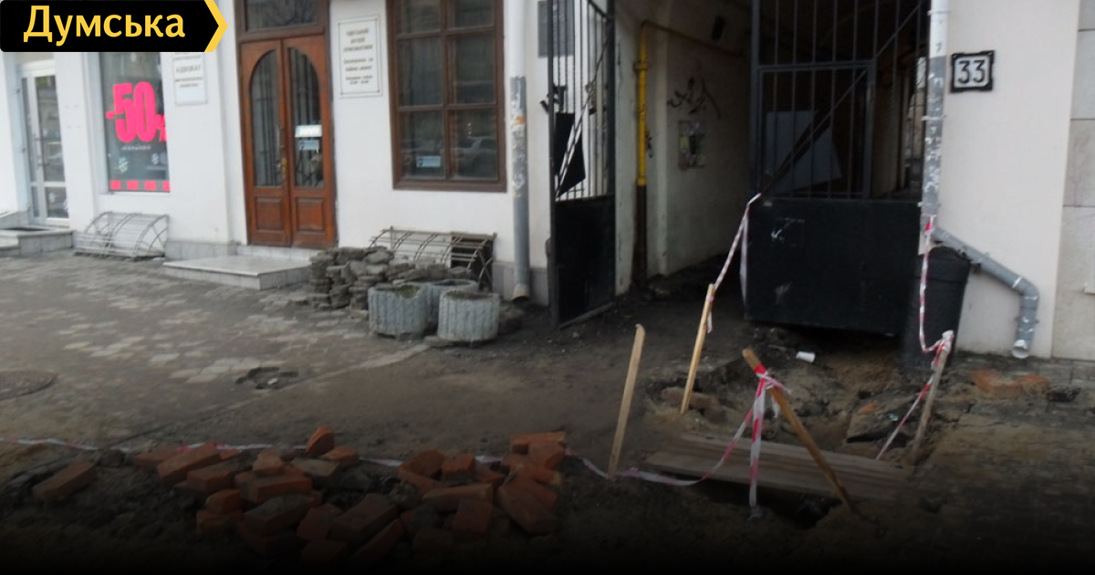 Одесский музей нумизматики, расположенный на Греческой улице, 33, вторую неделю не может нормально работать из-за перекопанного тротуара.