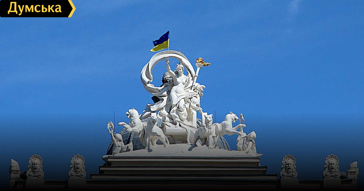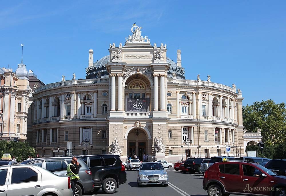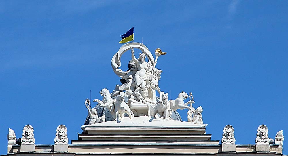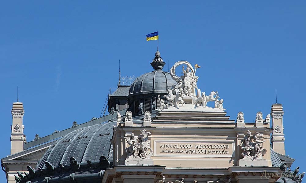На крыше Одесского академического театра оперы и балета установили государственный флаг Украины.
